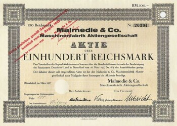 Transformation of “Malmedie & Cie. Maschinenfabrik” in a stock corporation (Malmedie & Co. AG)